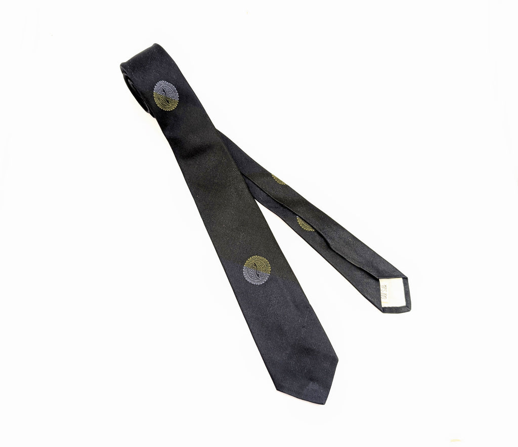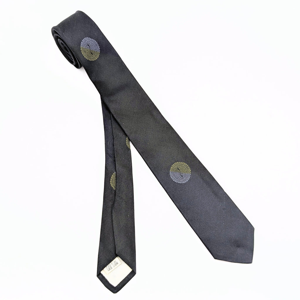 1960s Navy Blue Silk Skinny Tie Narrow Mad Men Era Mid Century Men's Vintage All Silk Necktie with Asian designs by Milt Baldridge
