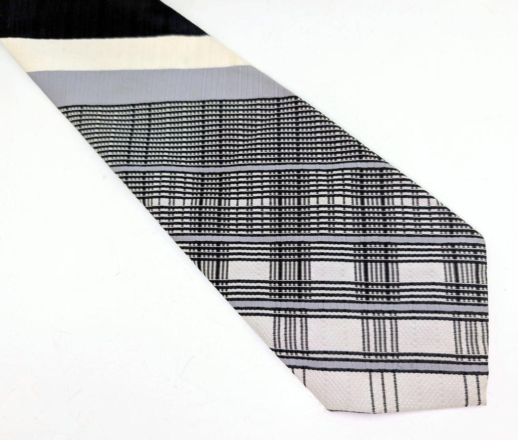 1970s Gray, Black & White Necktie Men's Vintage Super Wide Disco Era Polyester Tie by Richman Brothers